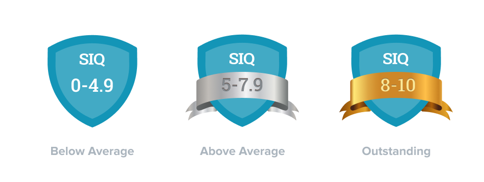 Articles will receive a ribbon around their SIQ scores if their score exceeds 5. Silver ribbons are awarded to articles with SIQs ranging from 5-7.9 and gold ribbons awarded to articles with scores of 8-10.