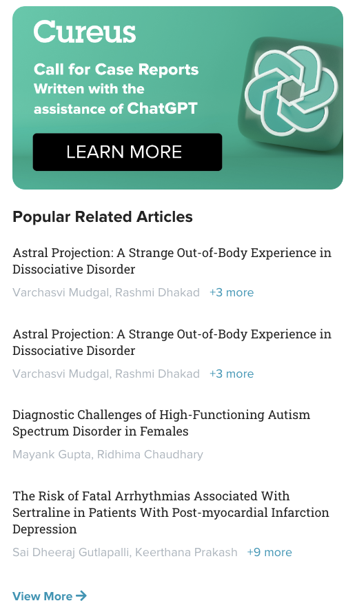 The insatiable scholars among us can find popular articles on the right side bar. Cureus will recommend Call for Submissions articles and other collections in our new Cureus Promotions space in the top right corner. Finally, quench your curiosity by searching for related topics and finding relevant "Further Reading" at the bottom of the article