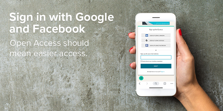 In addition to signing in with your email address or LinkedIn account, you can now quickly log in to Cureus via your Google or Facebook accounts. With mobile users increasing, this is just another step in making it easier to connect with the Cureus community.
