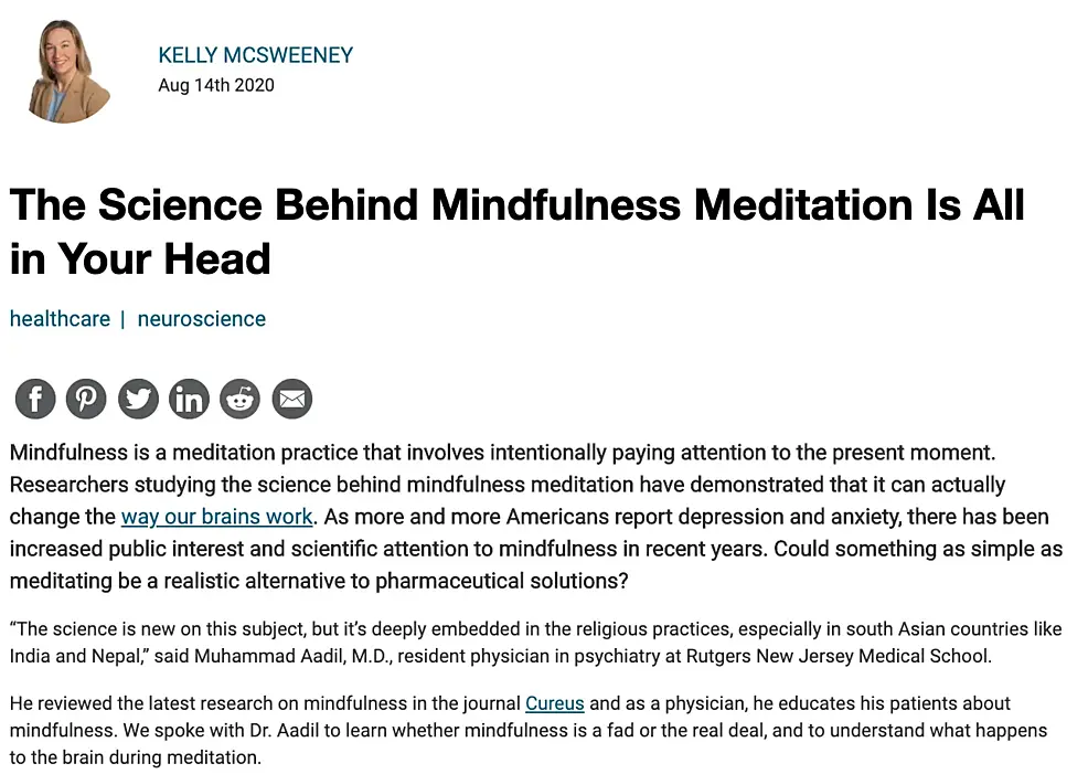 An article on mindfulness-based cognitive behavioral therapy published in Cureus was recently picked up by Northrop Grumman's publication, Now.