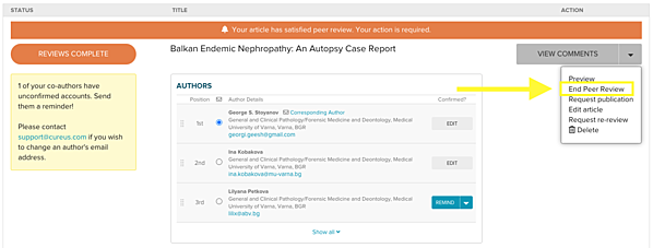 Hi, As 2020 comes to a close, we would like to thank you for your support during this very difficult year. Publishing and sharing peer-reviewed medical knowledge is more important than ever. We're on pace to publish over 5,600 peer-reviewed articles this year and that number would be zero if not for our dedicated community of authors and peer reviewers. We hope you are staying safe this holiday season! ---- As part of our continued efforts to improve the author experience, we're giving you more control over when peer review ends.  | |||