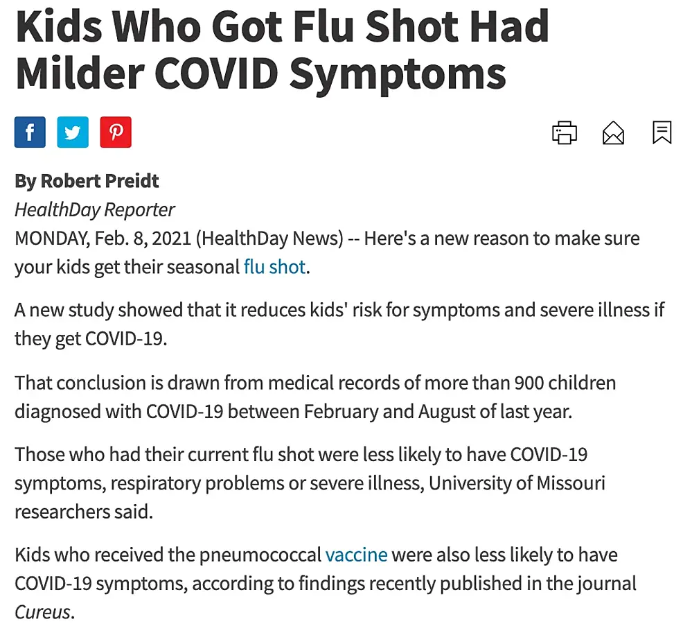 An article on the effect of the flu vaccination on the pediatric population published in Cureus was picked up by WebMD.com