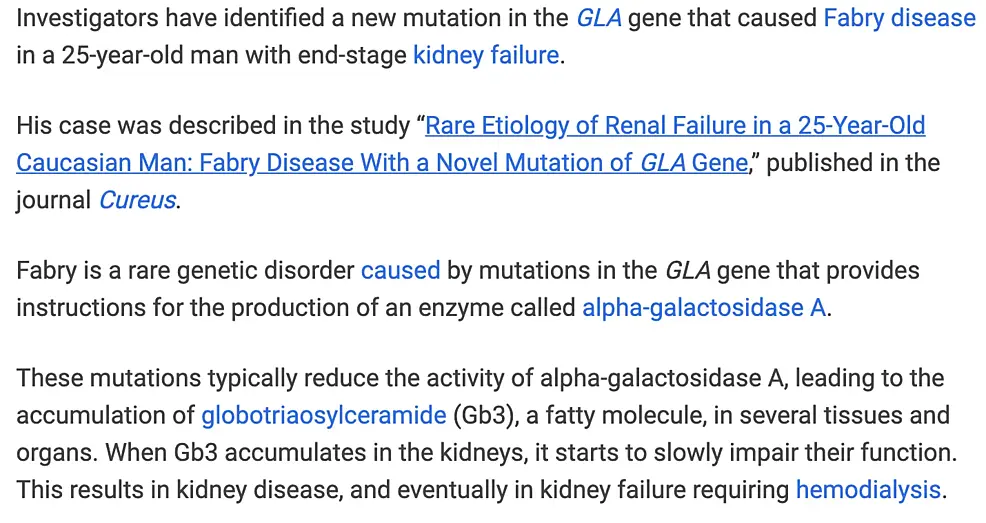 An article published in Cureus on the rare etiology of renal failure in a 25-year-old caucasian man was recently picked up by Fabry Disease News.