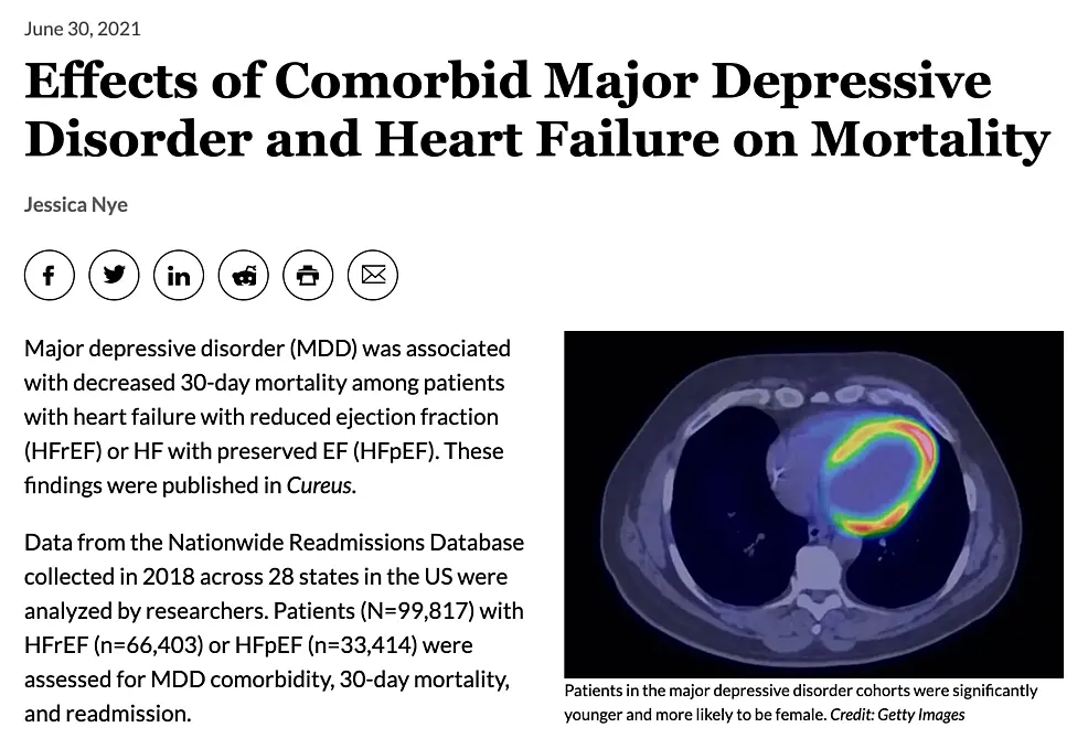 Read the Cureus article: Association of Major Depressive Disorder on Heart Failure With Reduced and Preserved Ejection Fraction: Analysis of National Readmission Database 2018